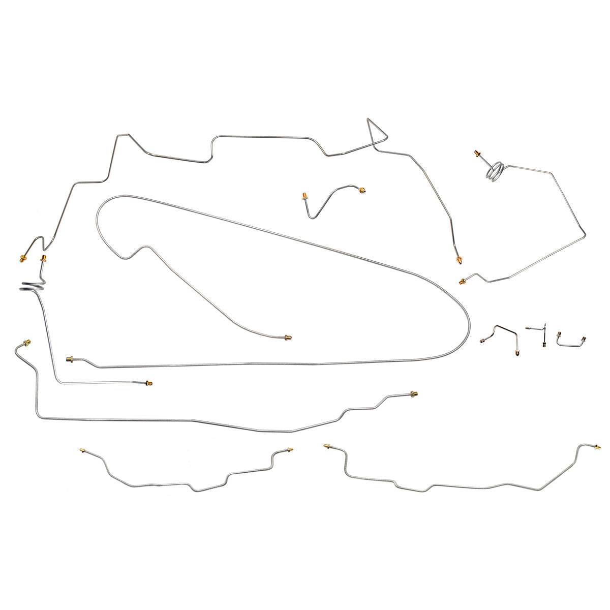 This preformed complete brake line kit will replace all the metal brake lines on your vehicle and includes the master cylinder lines, left front line and right front crossover line, intermediate lines, and rear axle lines/trailing arm lines.