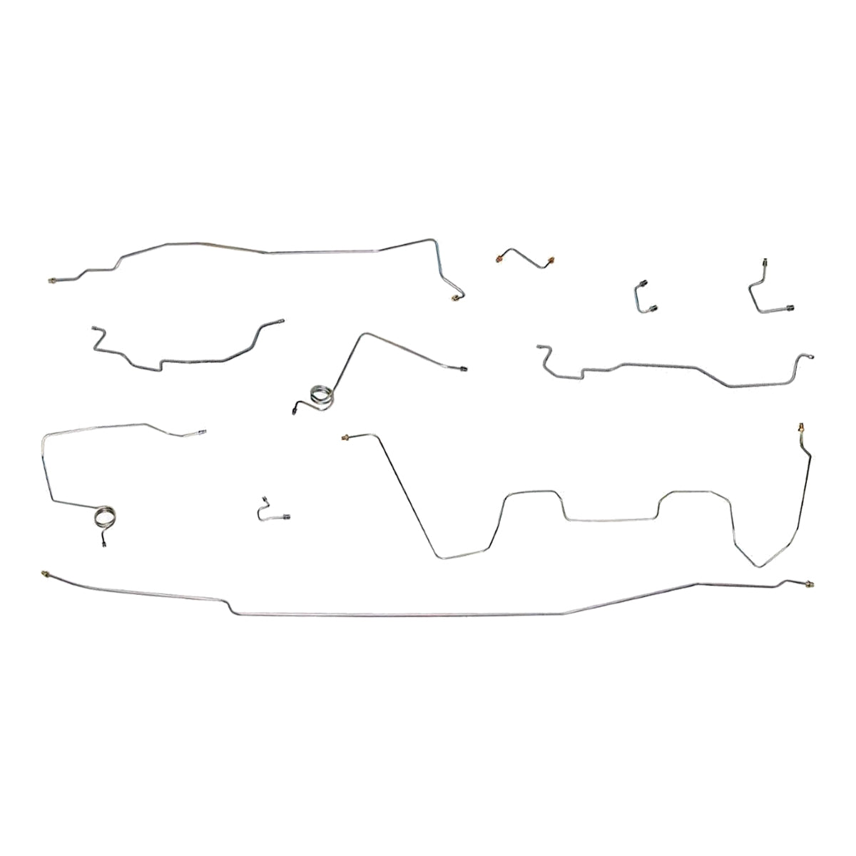 This preformed complete brake line kit will replace all the metal brake lines on your vehicle and includes the master cylinder lines, left front line and right front crossover line, intermediate lines, and rear axle lines/trailing arm lines.