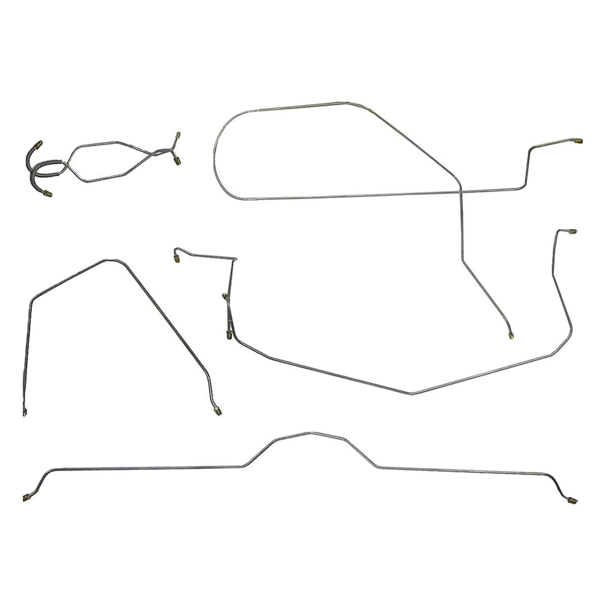 This preformed complete brake line kit will replace all the metal brake lines on your vehicle and includes the master cylinder lines, left front line and right front crossover line, intermediate lines, and rear axle lines/trailing arm lines.