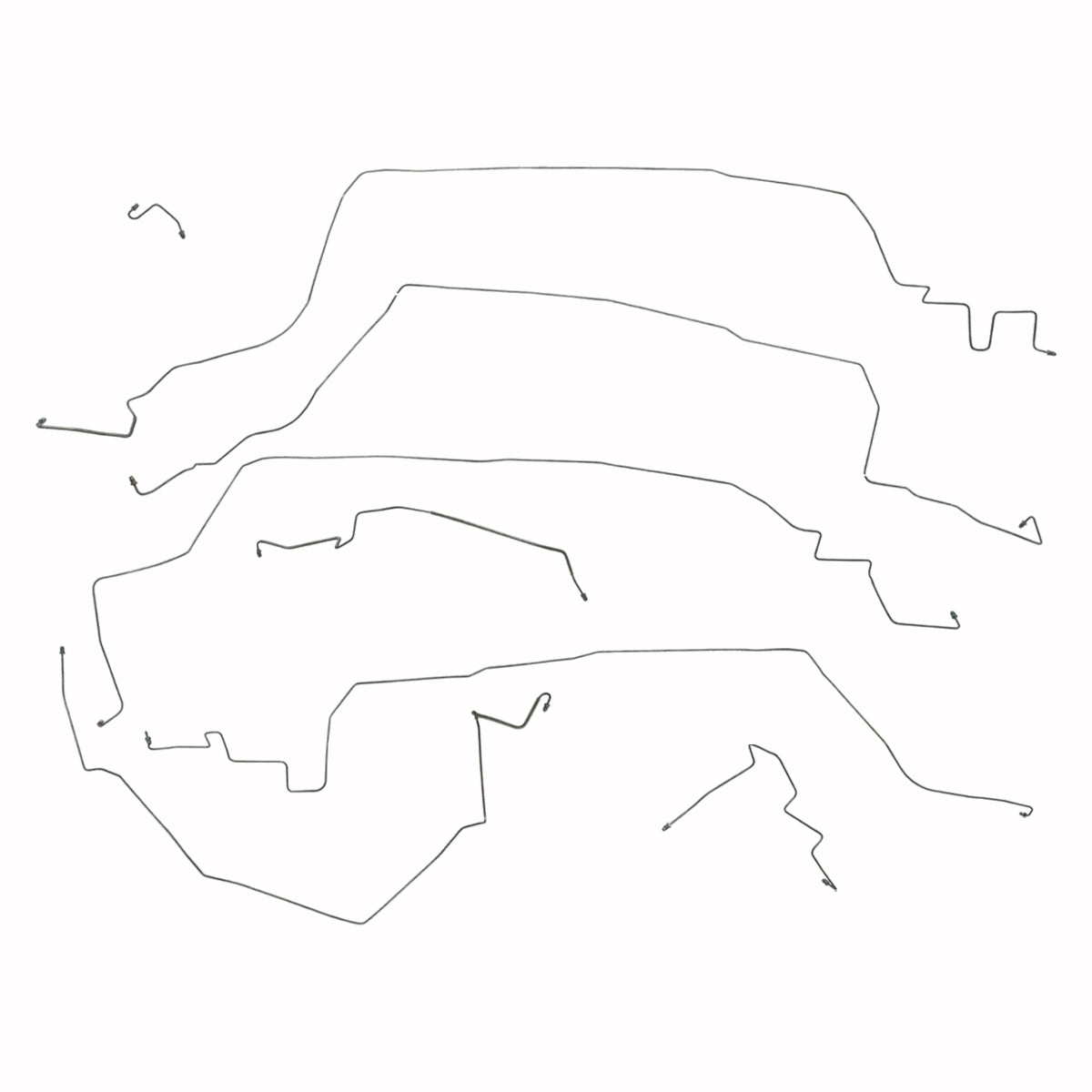 This preformed complete brake line kit will replace all the metal brake lines on your vehicle and includes the master cylinder lines, left front line and right front crossover line, intermediate lines, and rear axle lines/trailing arm lines.