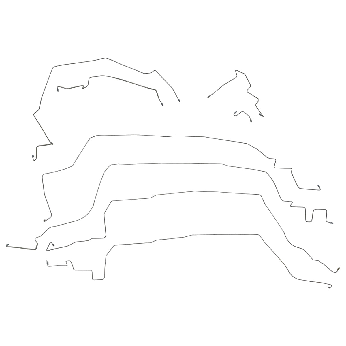 This preformed complete brake line kit will replace all the metal brake lines on your vehicle and includes the master cylinder lines, left front line and right front crossover line, intermediate lines, and rear axle lines/trailing arm lines.