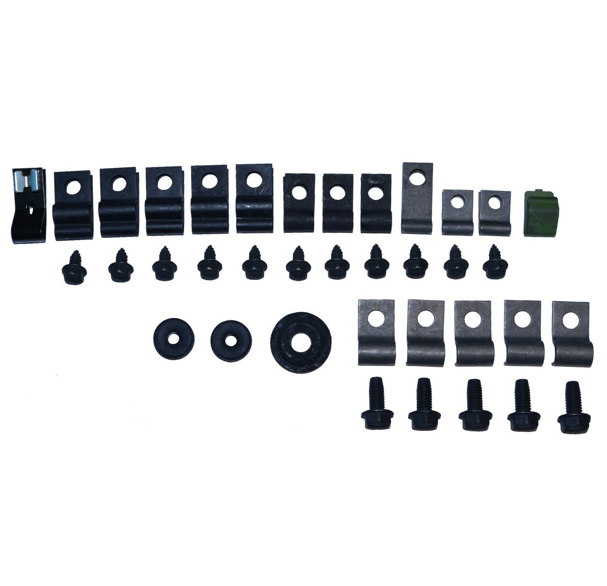 This brake & fuel line clip kit includes all necessary line clips for V8, vapor return line equipped, front disc or drum, hardtop mustangs.