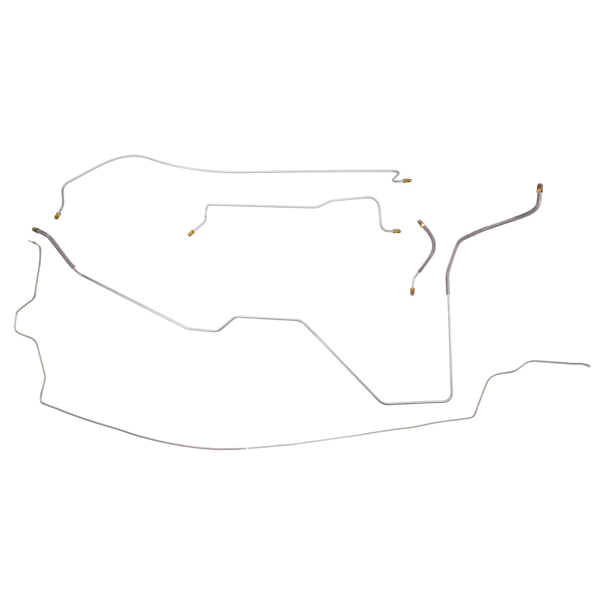 This preformed complete brake line kit will replace all the metal brake lines on your vehicle and includes the master cylinder lines, left front line and right-front crossover line, intermediate lines, and rear axle lines/trailing arm lines.
