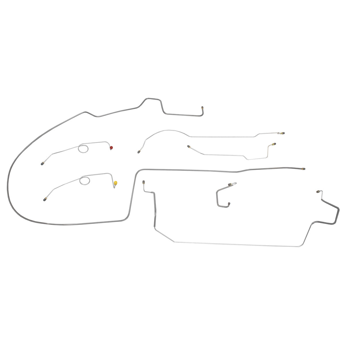 This preformed complete brake line kit will replace all the metal brake lines on your vehicle and includes the master cylinder lines, left front line and right front crossover line, intermediate lines, and rear axle lines/trailing arm lines.