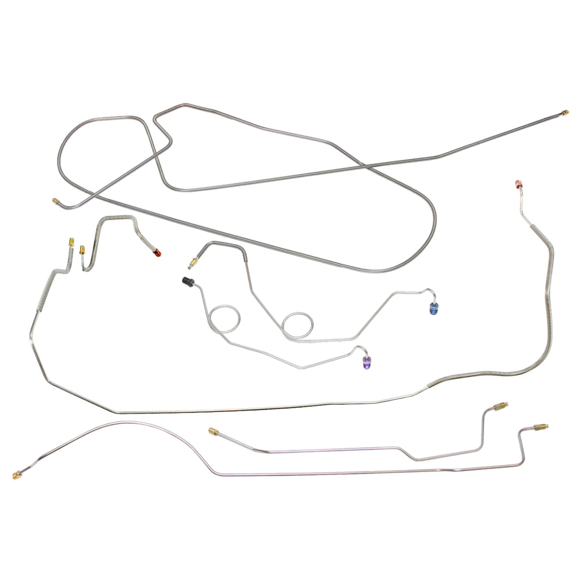This preformed complete brake line kit will replace all the metal brake lines on your vehicle and includes the master cylinder lines, left front line and right-front crossover line, intermediate lines, and rear axle lines/trailing arm lines.