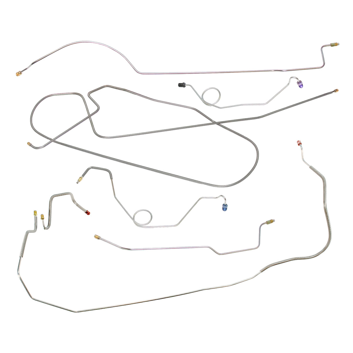 This preformed complete brake line kit will replace all the metal brake lines on your vehicle and includes the master cylinder lines, left front line and right-front crossover line, intermediate lines, and rear axle lines/trailing arm lines.