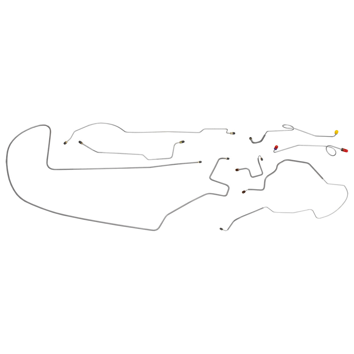 This preformed complete brake line kit will replace all the metal brake lines on your vehicle and includes the master cylinder lines, left front line and right front crossover line, intermediate lines, and rear axle lines/trailing arm lines.