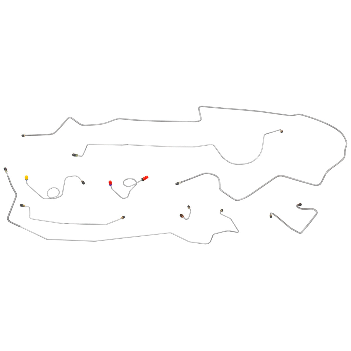 This preformed complete brake line kit will replace all the metal brake lines on your vehicle and includes the master cylinder lines, left front line and right front crossover line, intermediate lines, and rear axle lines/trailing arm lines.