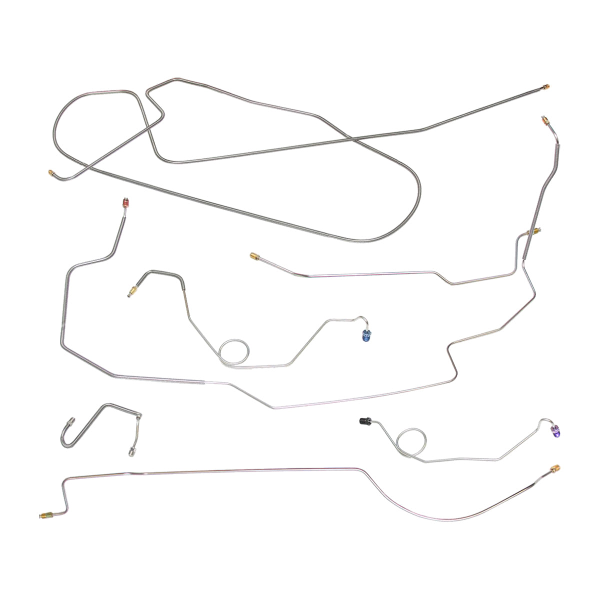 This preformed complete brake line kit will replace all the metal brake lines on your vehicle and includes the master cylinder lines, left front line and right front crossover line, intermediate lines, and rear axle lines/trailing arm lines.