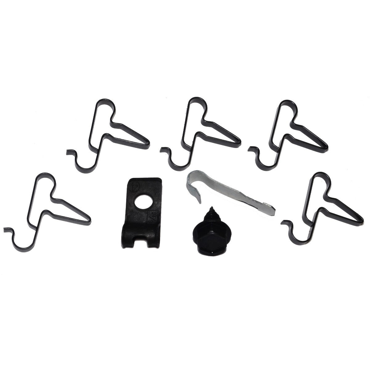 This clip kit includes all clips necessary to secure the fuel lines to the chassis of the car: five line clamps, one ’J’ clip, one R style clip, and one bolt.