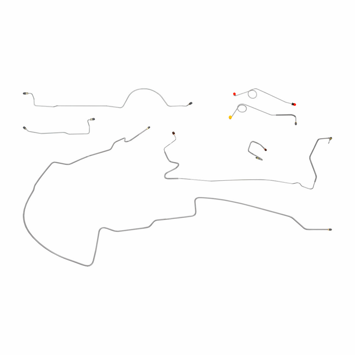 This preformed complete brake line kit will replace all the metal brake lines on your vehicle and includes the master cylinder lines, left front line and right-front crossover line, intermediate lines, and rear axle lines/trailing arm lines.