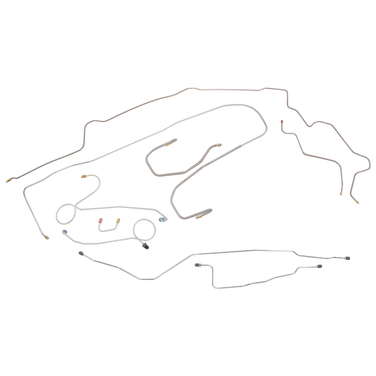 This preformed complete brake line kit will replace all the metal brake lines on your vehicle and includes the master cylinder lines, left front line and right-front crossover line, intermediate lines, and rear axle lines/trailing arm lines.