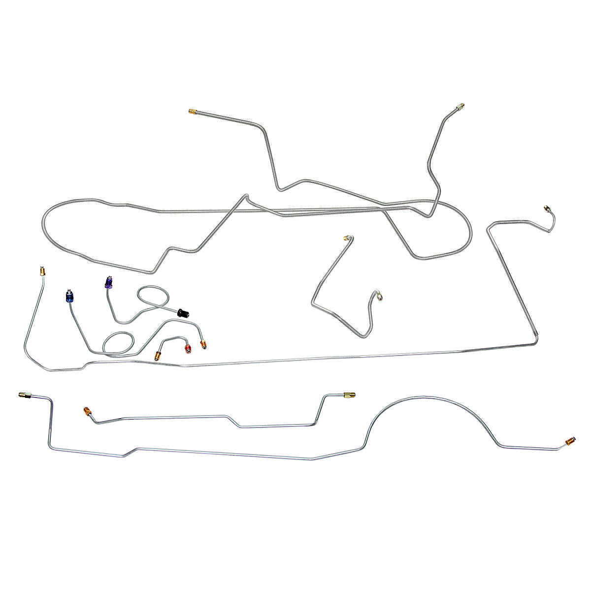 This preformed complete brake line kit will replace all the metal brake lines on your vehicle and includes the master cylinder lines, left front line and right front crossover line, intermediate lines, and rear axle lines/trailing arm lines.
