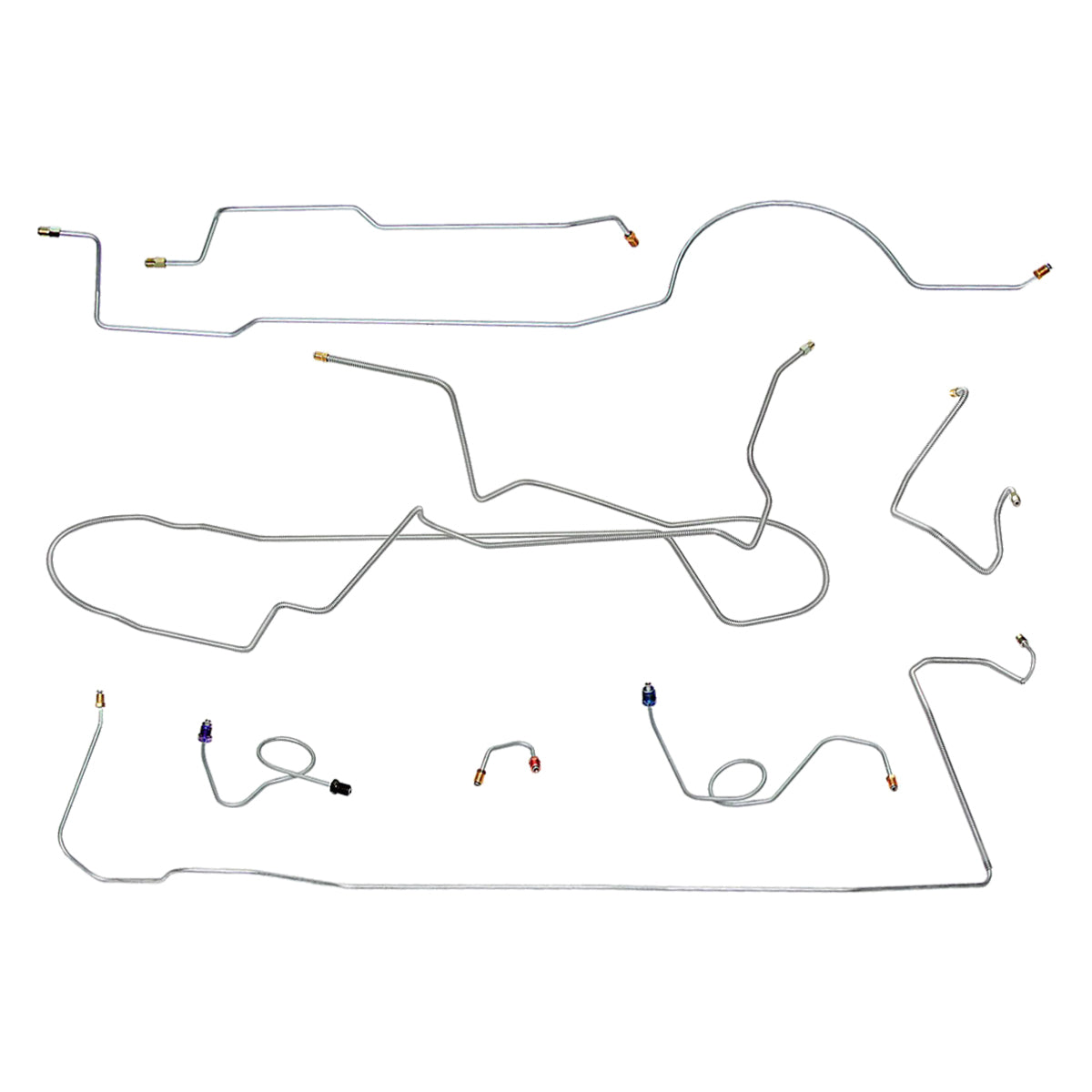This preformed complete brake line kit will replace all the metal brake lines on your vehicle and includes the master cylinder lines, left front line and right front crossover line, intermediate lines, and rear axle lines/trailing arm lines.