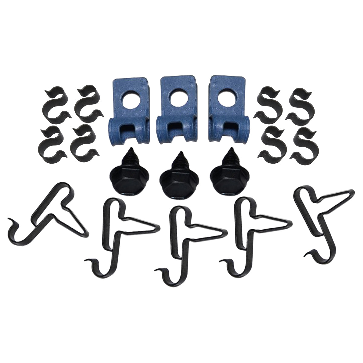 This clip kit includesĀ all clips necessary to secure the fuel lines to the chassis of the car: eight ’S’ clips, fiveĀ line clamps,Ā threeĀ R style clips, andĀ threeĀ bolts.
