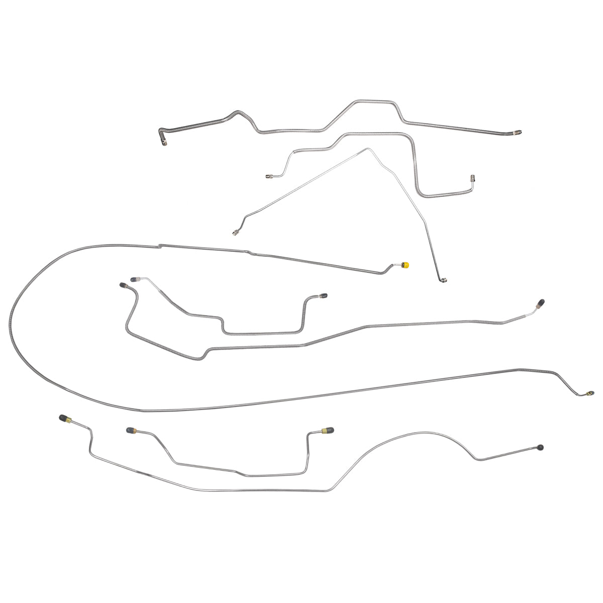 This preformed complete brake line kit will replace all the metal brake lines on your vehicle and includes the master cylinder lines, left front line and right front crossover line, intermediate lines, and rear axle lines/trailing arm lines.