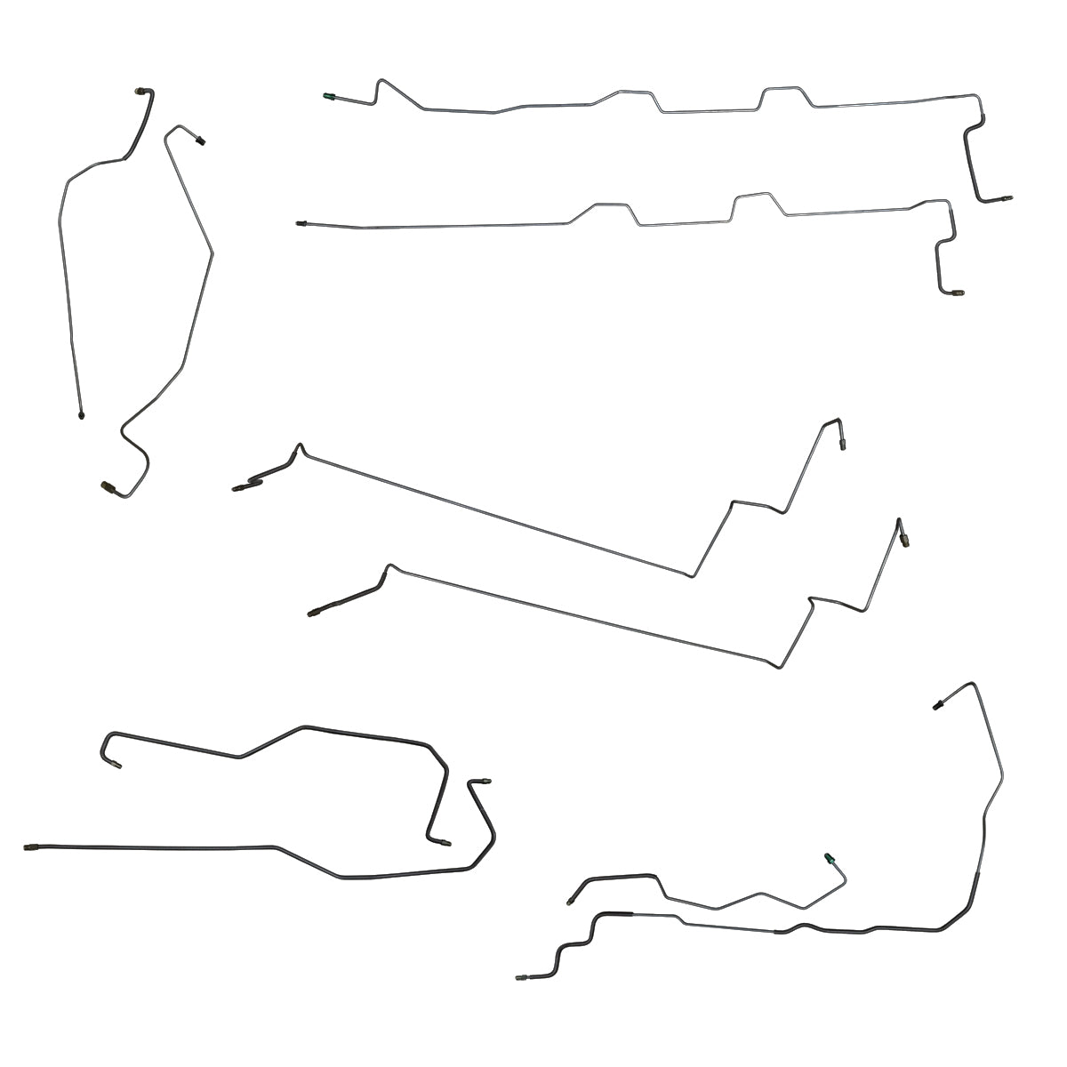 This preformed complete brake line kit will replace all the metal brake lines on your vehicle and includes the master cylinder lines, left front line and right front crossover line, intermediate lines, and rear axle lines/trailing arm lines.