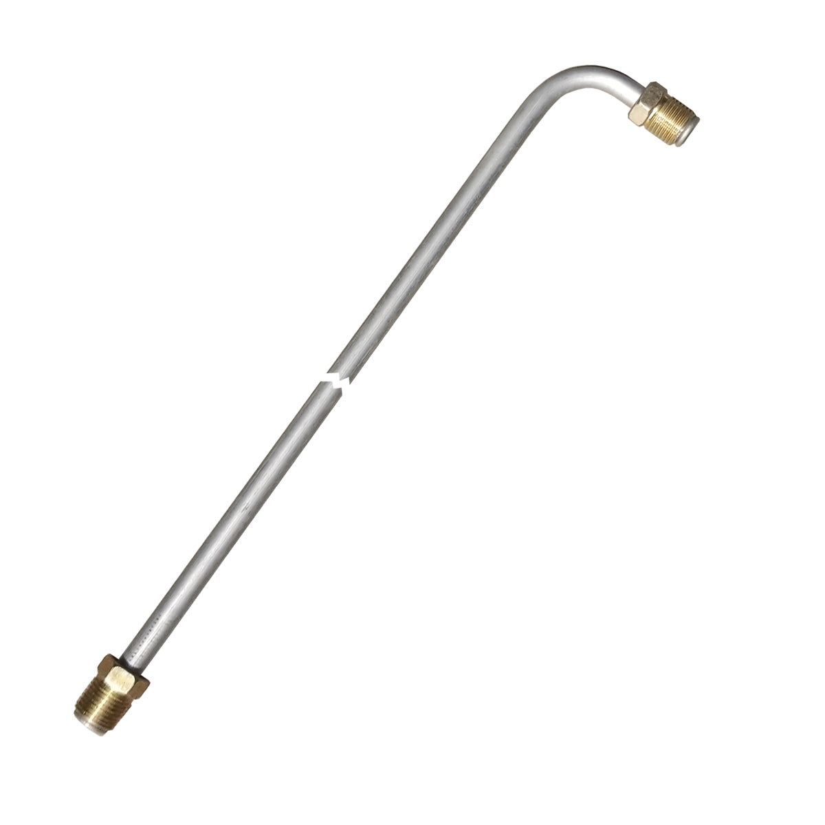 This pre-fabricated tube has a 90-degree bend on one end and is 12” in total length including the 1/4” tube and 7/16”-24 fittings.