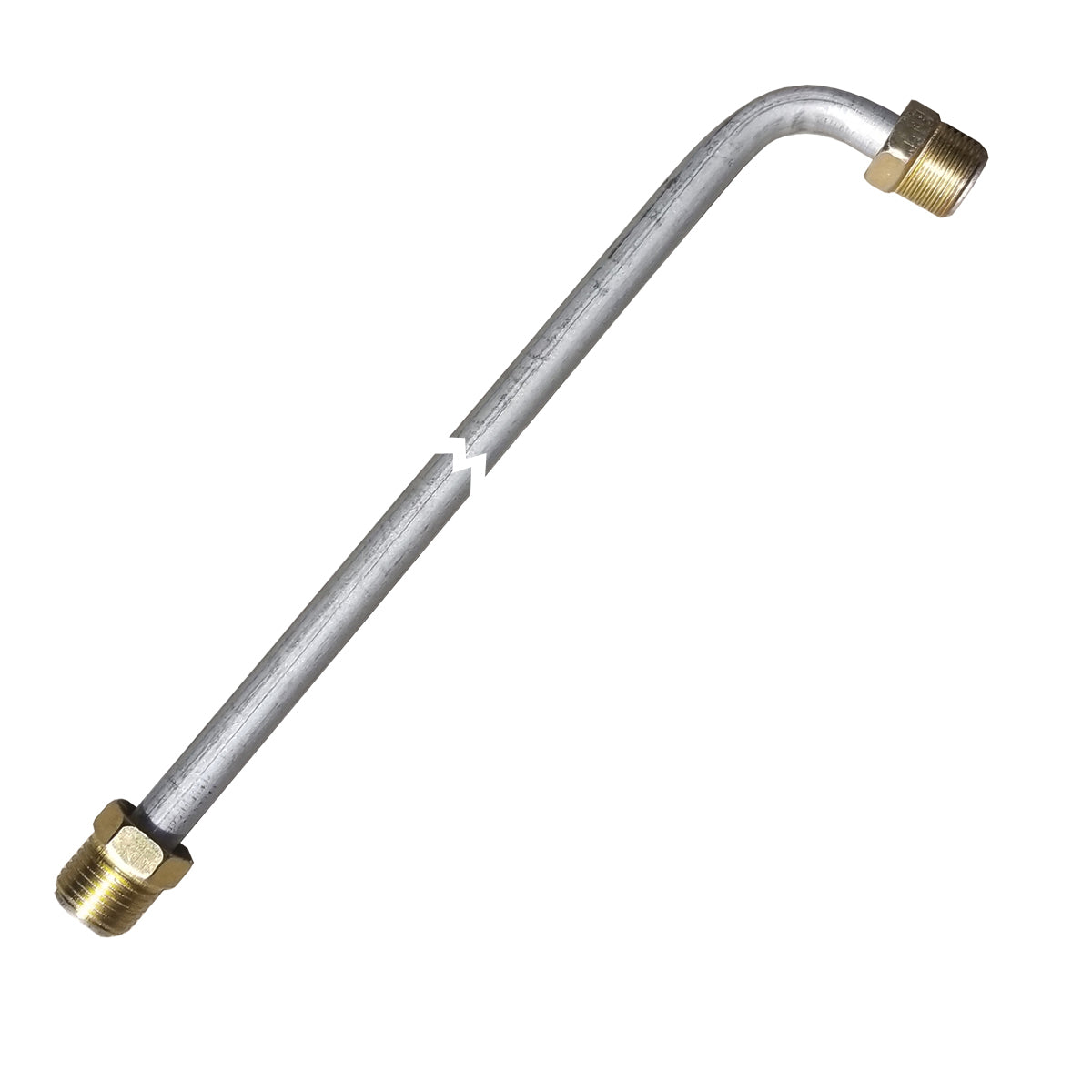 This pre-fabricated tube has a 90-degree bend on one end and is 12” in total length including the 3/8” tube and 5/8”-18 fittings.