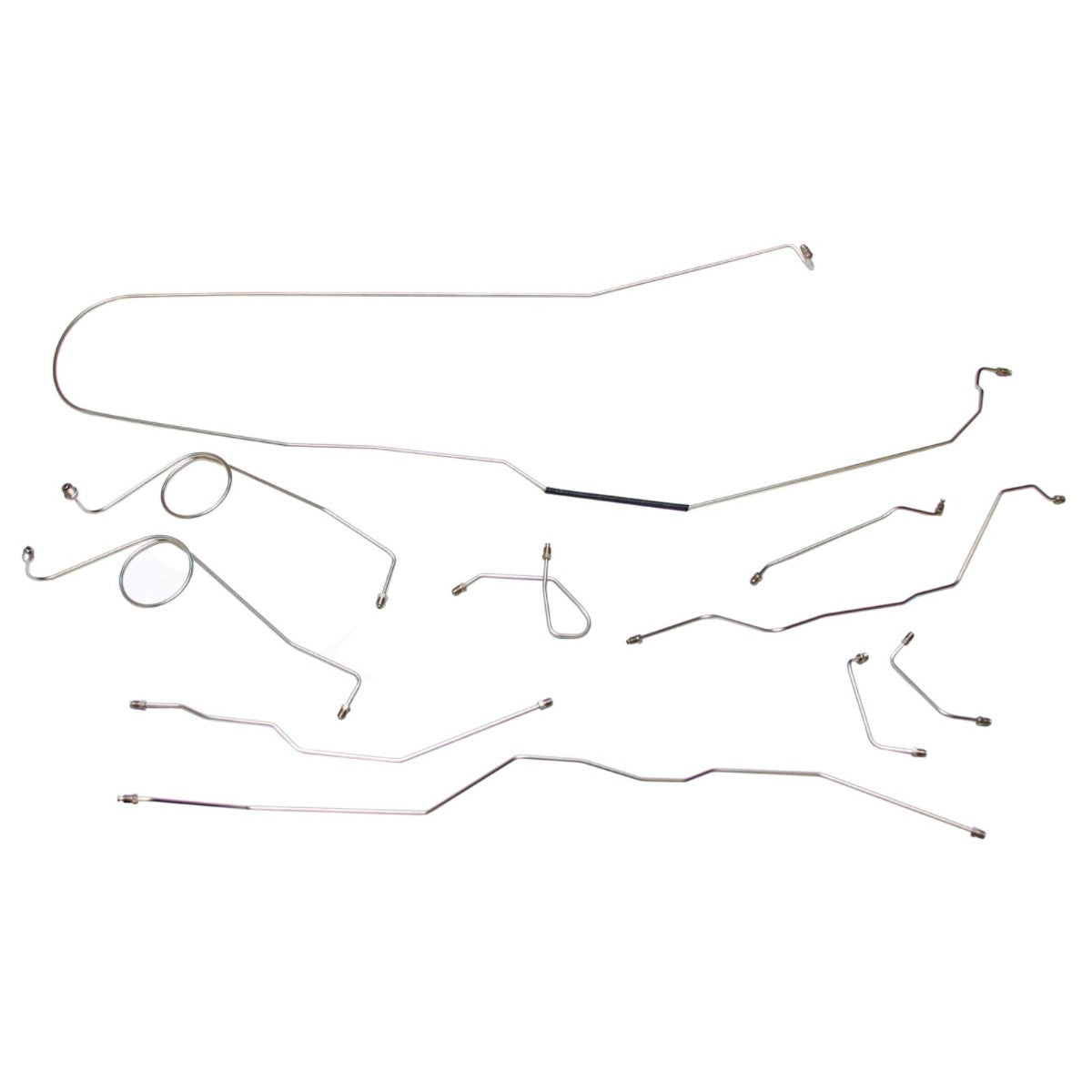 This preformed complete brake line kit will replace all the metal brake lines on your vehicle and includes the master cylinder lines, left front line and right front crossover line, intermediate lines, and rear axle lines/trailing arm lines.