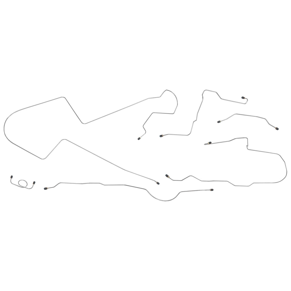 This preformed complete brake line kit will replace all the metal brake lines on your vehicle and includes the master cylinder lines, left front line and right front crossover line, intermediate lines, and rear axle lines/trailing arm lines.