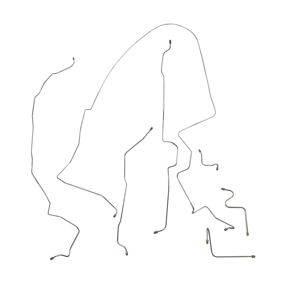 This preformed complete brake line kit will replace all the metal brake lines on your vehicle and includes the master cylinder lines, left front line and right front crossover line, intermediate lines, and rear axle lines/trailing arm lines.