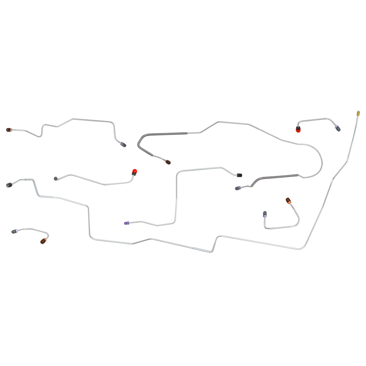 This preformed complete brake line kit will replace all the metal brake lines on your vehicle and includes the master cylinder lines, left front line and right front crossover line, intermediate lines, and rear axle lines/trailing arm lines.