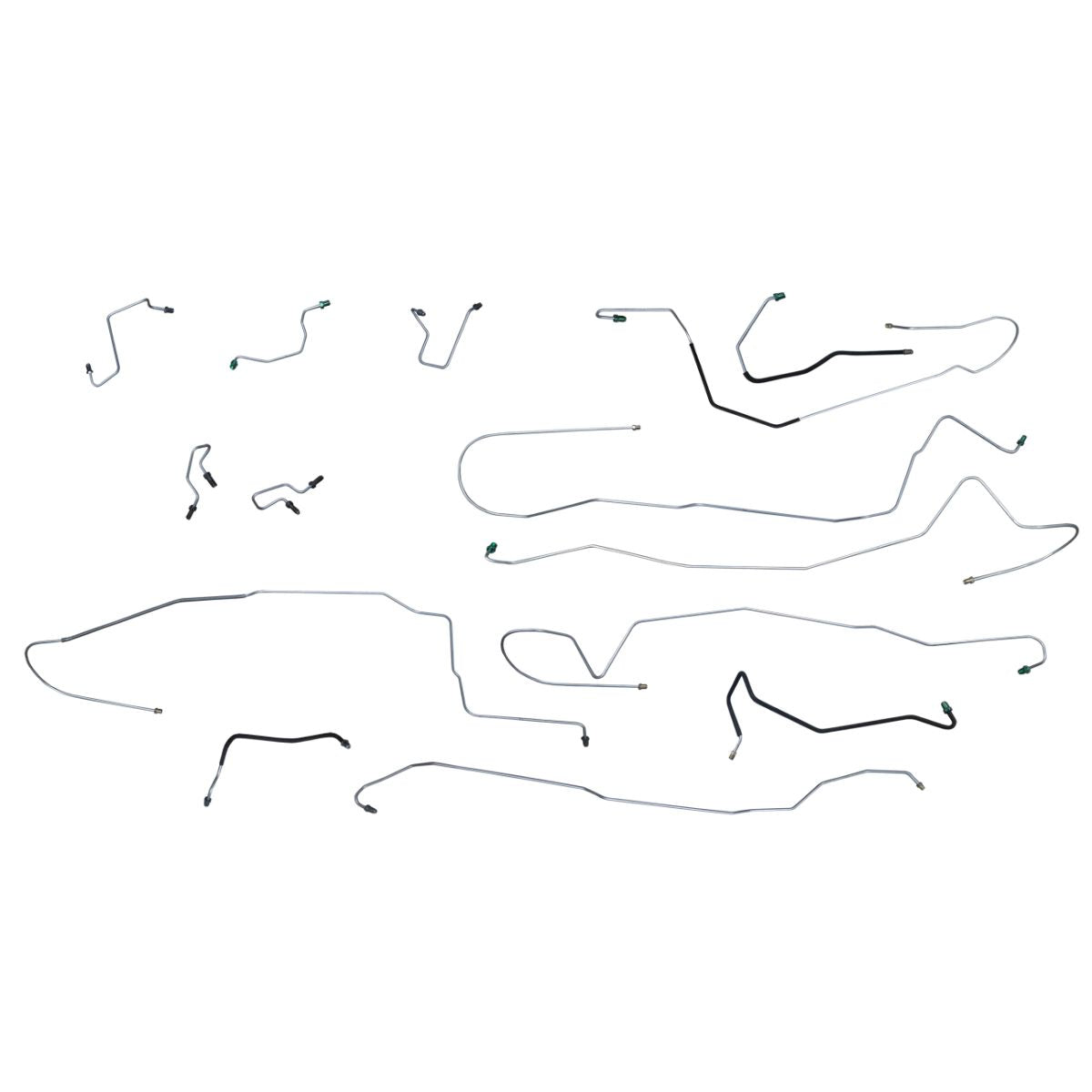 This preformed complete brake line kit will replace all the metal brake lines on your vehicle and includes the master cylinder lines, left front line and right front crossover line, intermediate lines, and rear axle lines/trailing arm lines.
