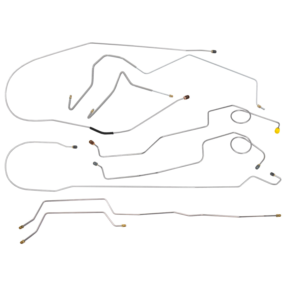 This preformed complete brake line kit will replace all the metal brake lines on your vehicle and includes the master cylinder lines, left front line and right-front crossover line, intermediate lines, and rear axle lines/trailing arm lines.