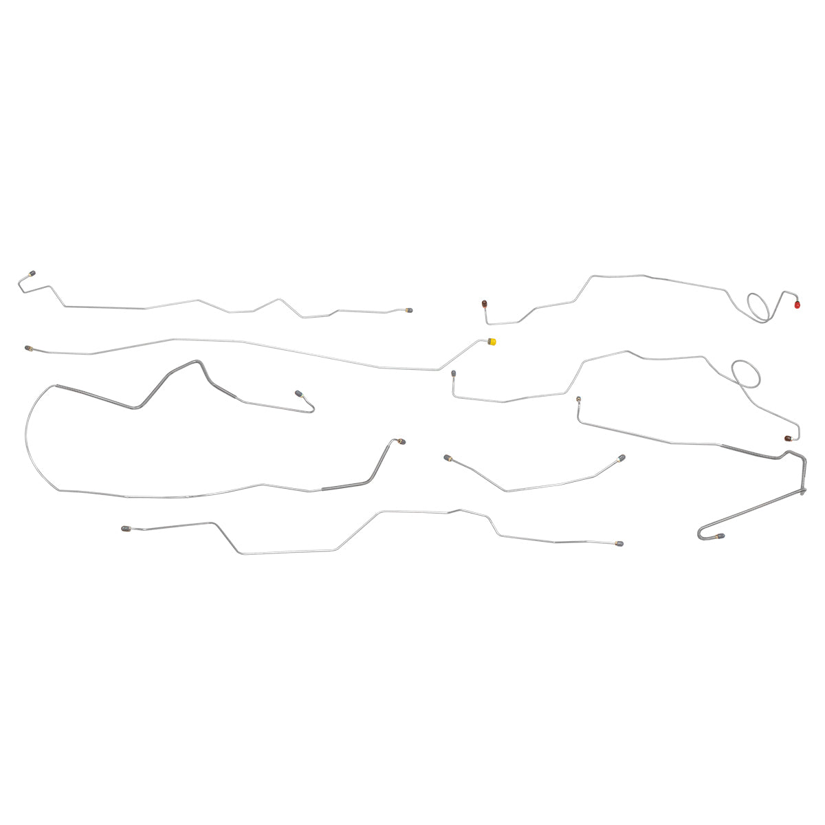 This preformed complete brake line kit will replace all the metal brake lines on your vehicle and includes the master cylinder lines, left front line and right front crossover line, intermediate lines, and rear axle lines/trailing arm lines.