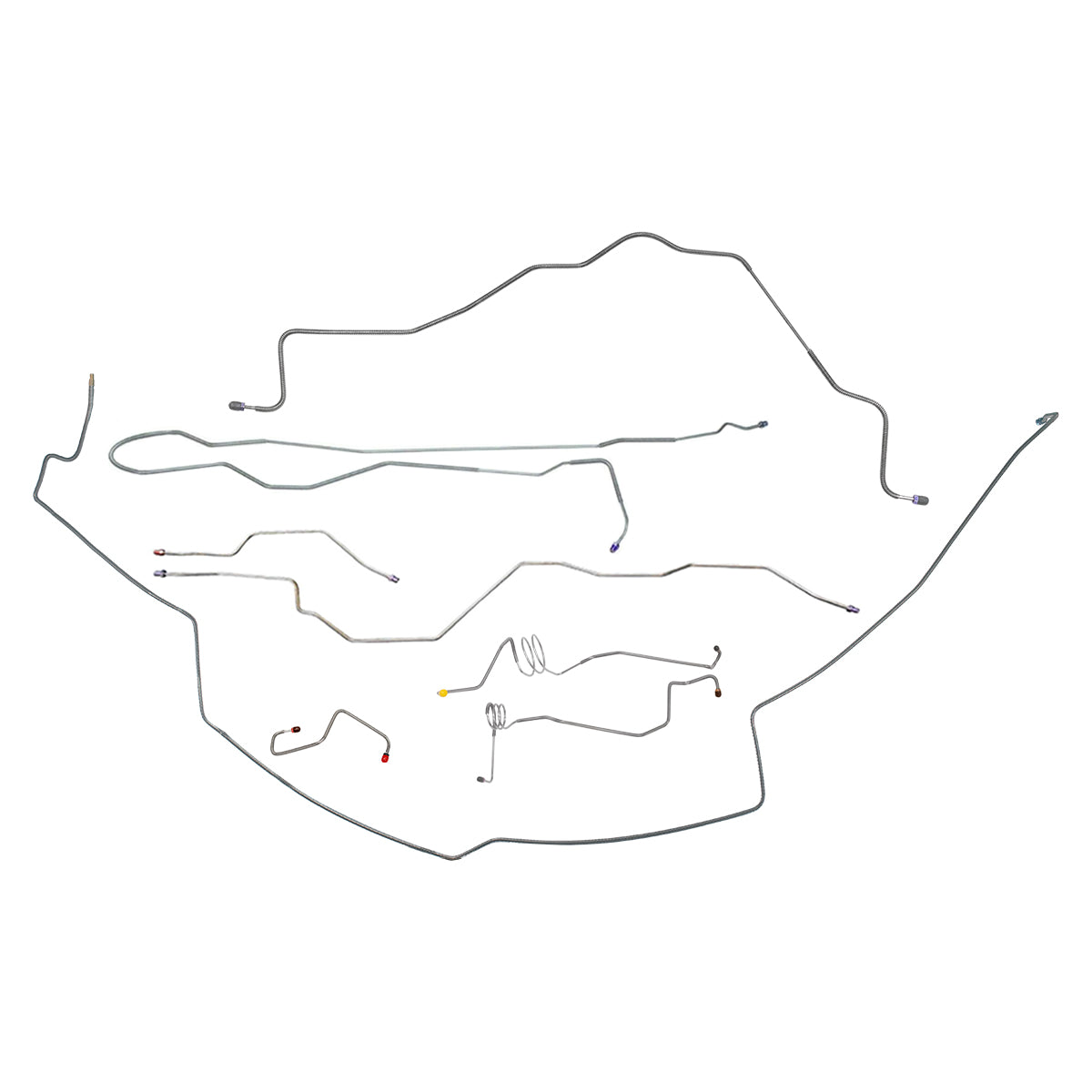 This preformed complete brake line kit will replace all the metal brake lines on your vehicle and includes the master cylinder lines, left front line and right-front crossover line, intermediate lines, and rear axle lines/trailing arm lines.