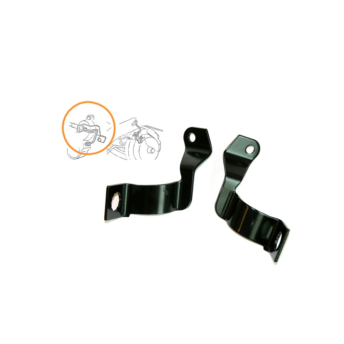 This is a pair of front hose brackets (mounted at caliper) for 1967 GM A-body cars with factory four-piston calipers.