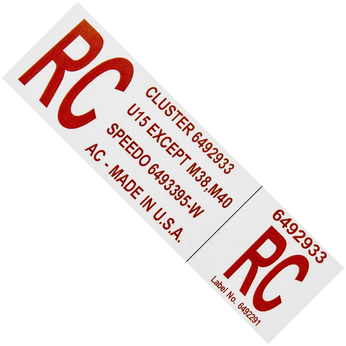 1970 - 72 Olds Cutlass Cluster Decal - RC U15 Except M38, M40 - Speedo