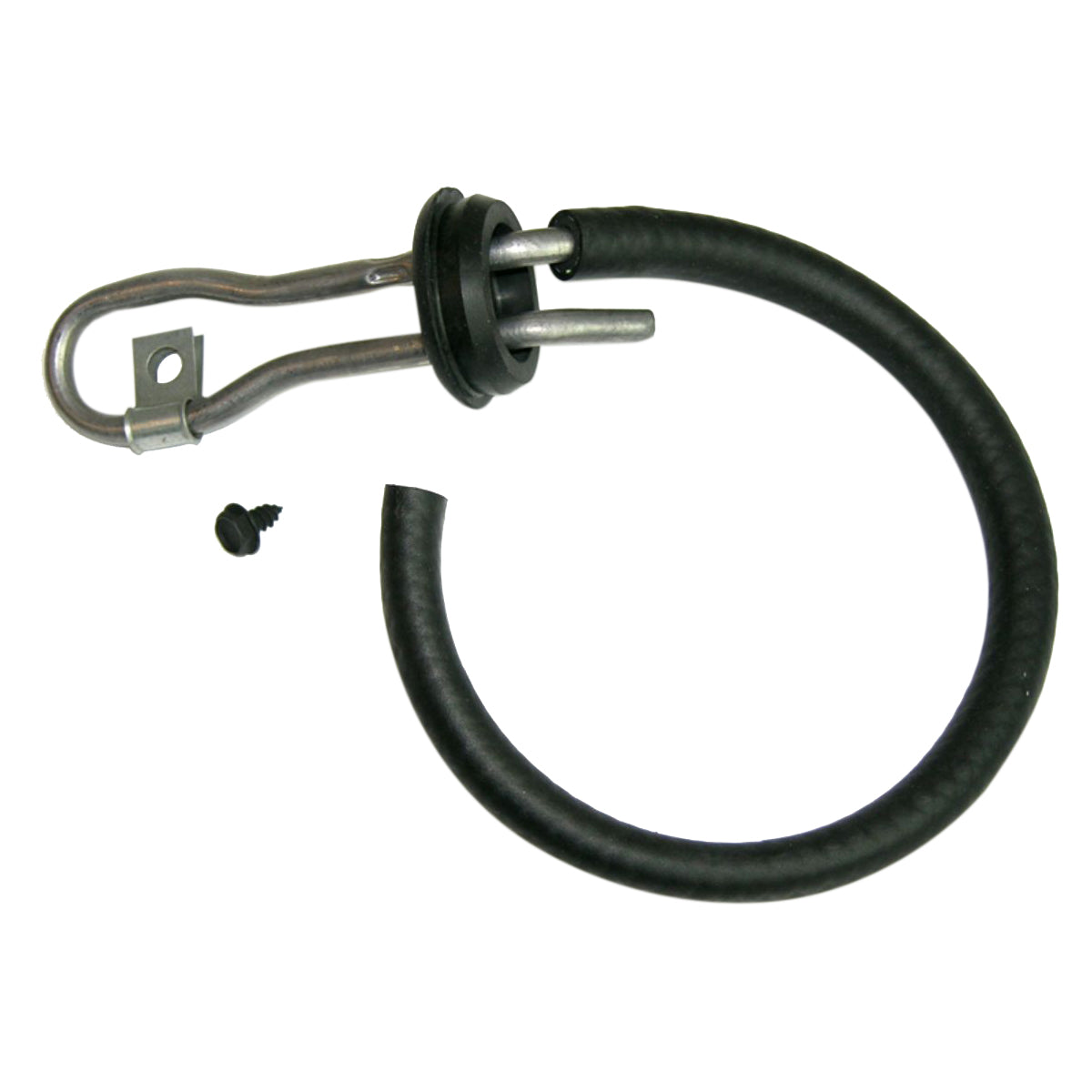This trunk vent tube fits 1969 Pontiac GTO, LeMans, and Tempest models. Located near the trunk latch, it connects to the gas tank filler neck via a short rubber hose and vents fuel vapors safely.