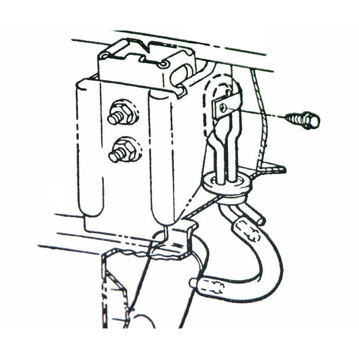 This trunk vent tube fits 1969 Pontiac GTO, LeMans, and Tempest models. Located near the trunk latch, it connects to the gas tank filler neck via a short rubber hose and vents fuel vapors safely.