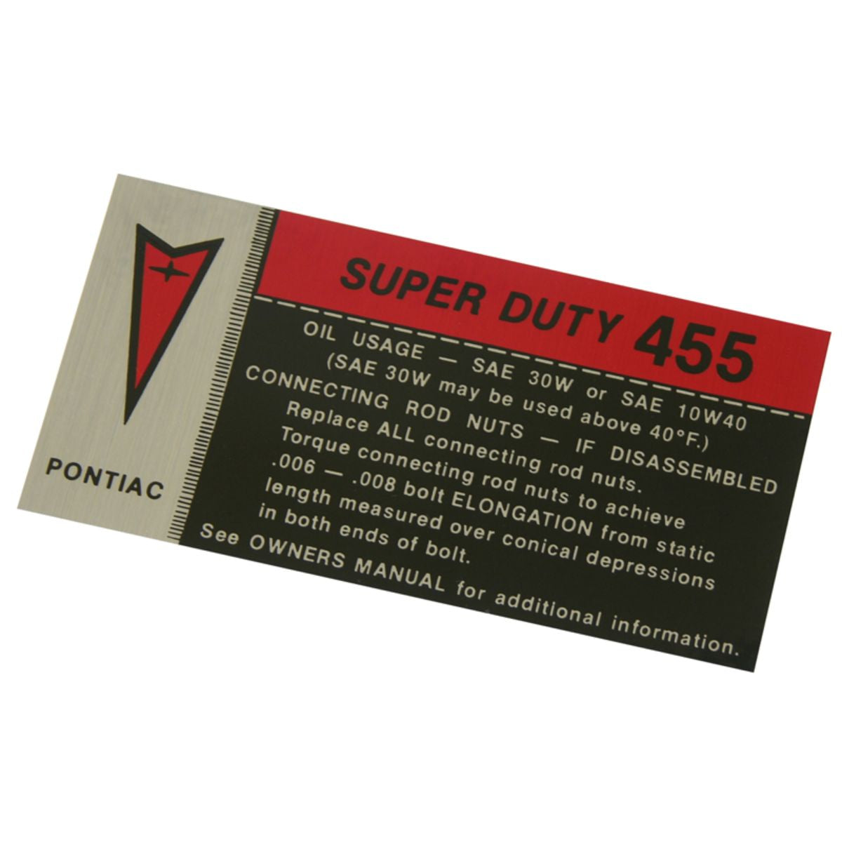 1973-74 Pontiac Firebird Trans Am SD 455 Valve Cover Decal 1pc