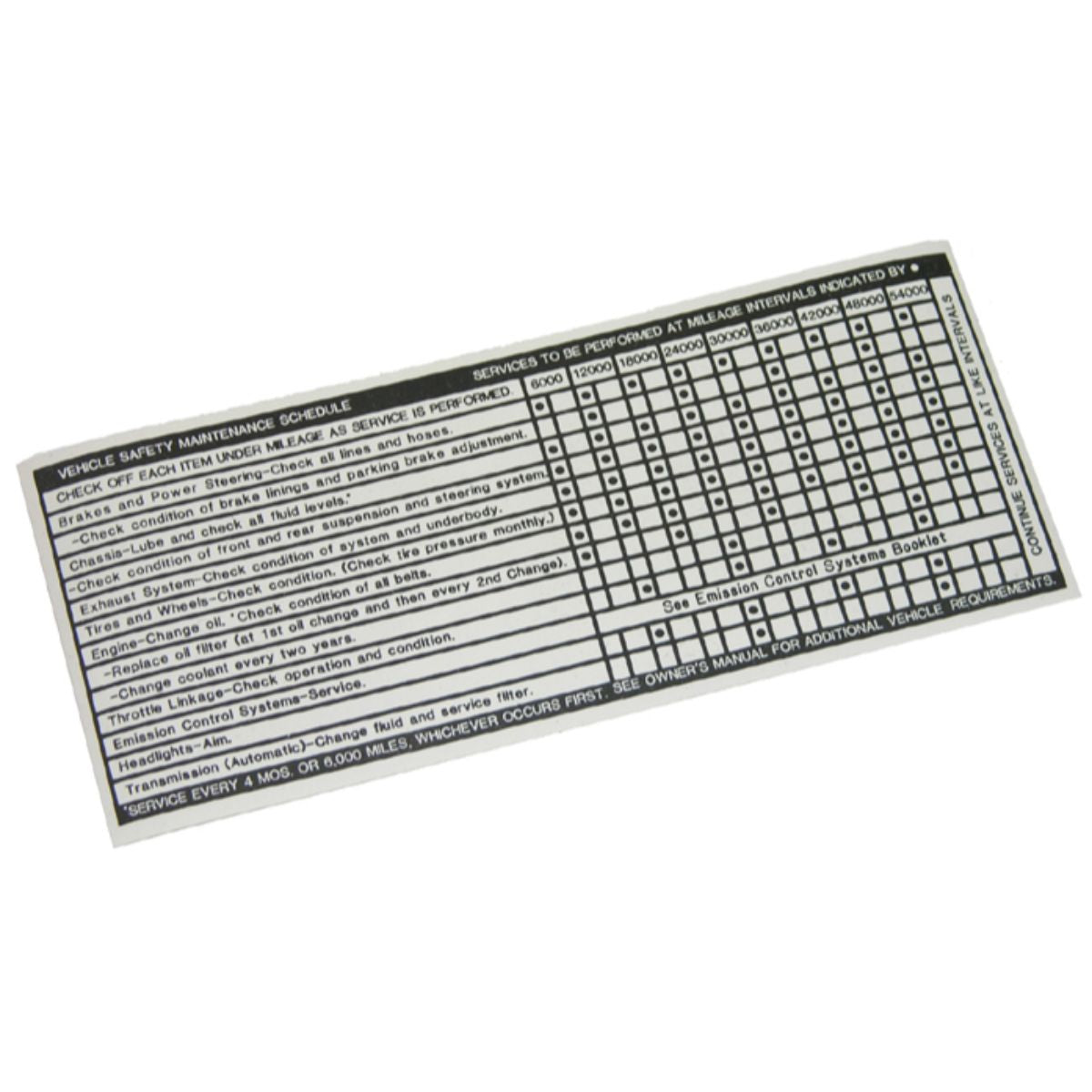 1971-72 Oldsmobile Cutlass/442 Vehicle Safety Maintenance Schedule Sticker 1pc