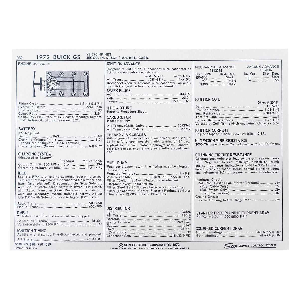 1972 Buick GS - V8 270 HP Net 455 CID 4bbl
