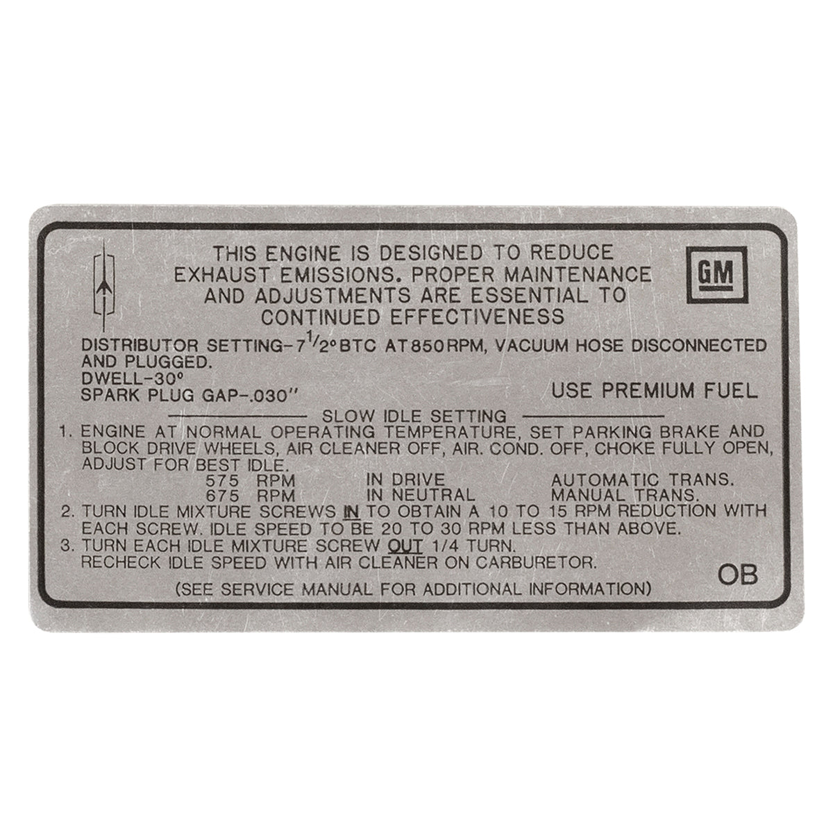 1968 Oldsmobile A & B-Body Tune Up Decal 350 CID 4BBL (OB) AT/MT