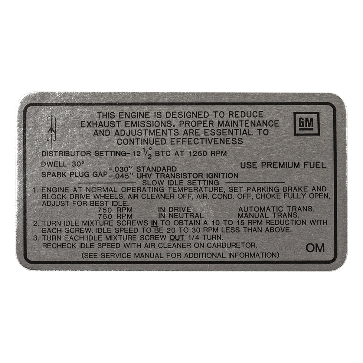 1968 Oldsmobile Cutlass Tune Up Decal 442, W-30, 400 CID, 4BBL (OM) AT