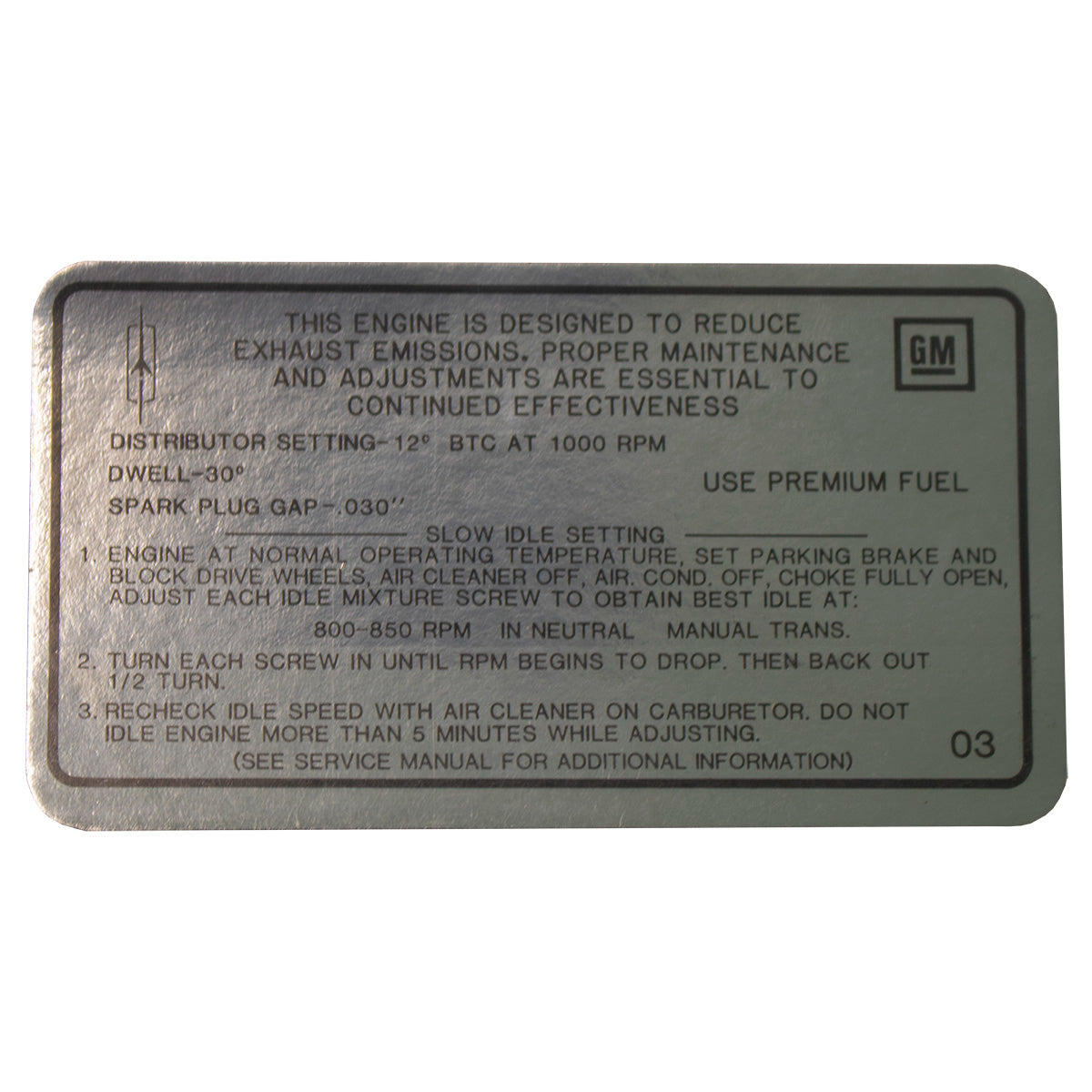 1969 Oldsmobile Cutlass Tune Up Decal W-31, 350 CID, 4BBL (OB) AT/MT
