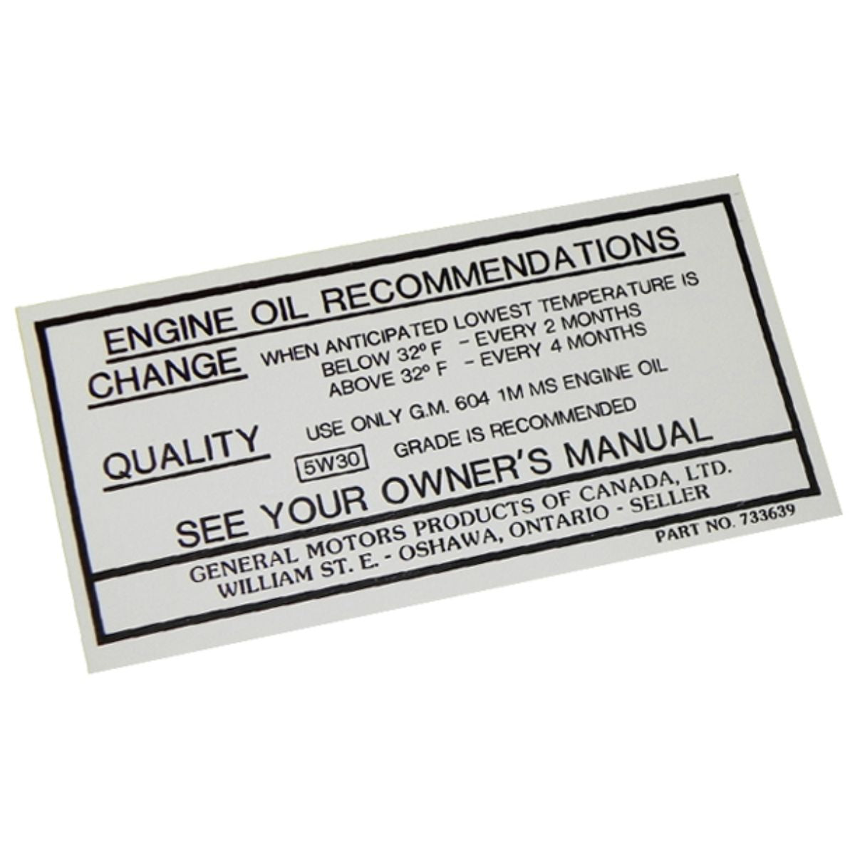 1968-72 Oldsmobile Canadian Oil Valve Cover Decal