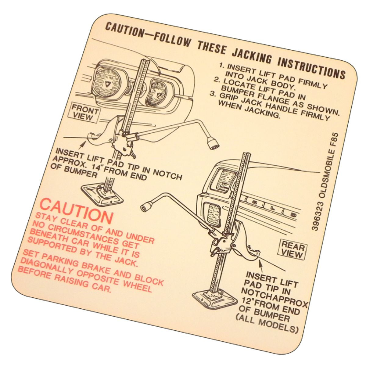 1967 Oldsmobile Cutlass Jack Use Instructions Decal 1pc