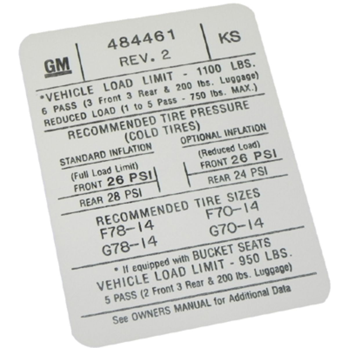 1972 Pontiac GTO/LeMans Door Jamb Tire Pressure Decal 1pc