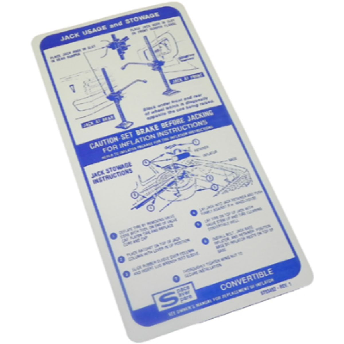 1968 Pontiac Firebird Convertible Jack Instruction Space Saver Spare 1pc