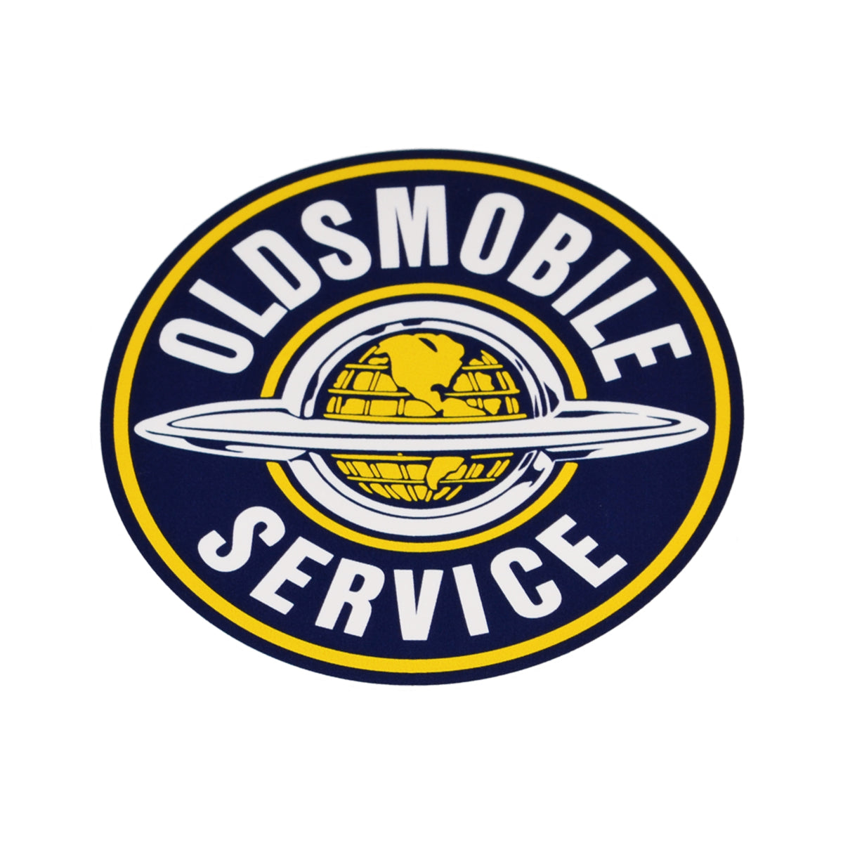 Oldsmobile Service World In Middle Sticker - Size 3 1/2 Round