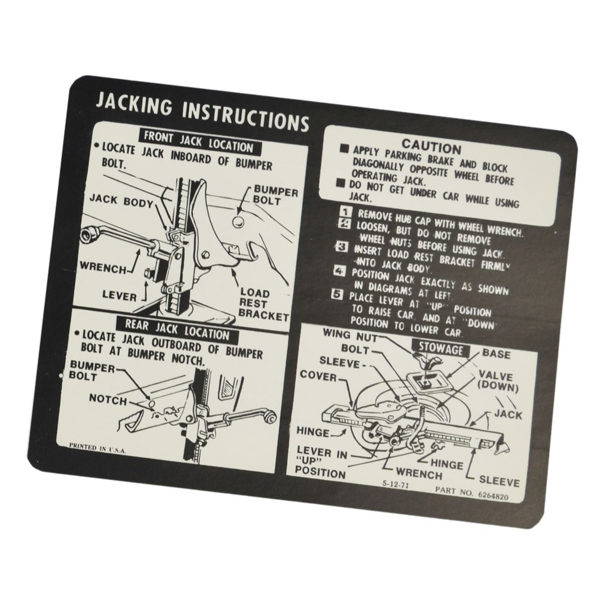 1972 Chevrolet Monte Carlo Jacking Instructions.