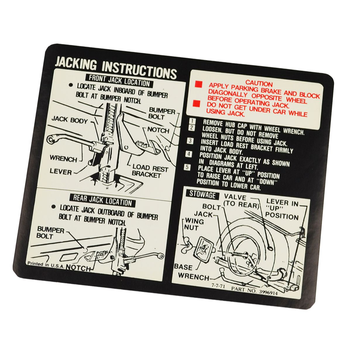1972 Chevrolet ElCamino & Sprint Jacking Instructions.