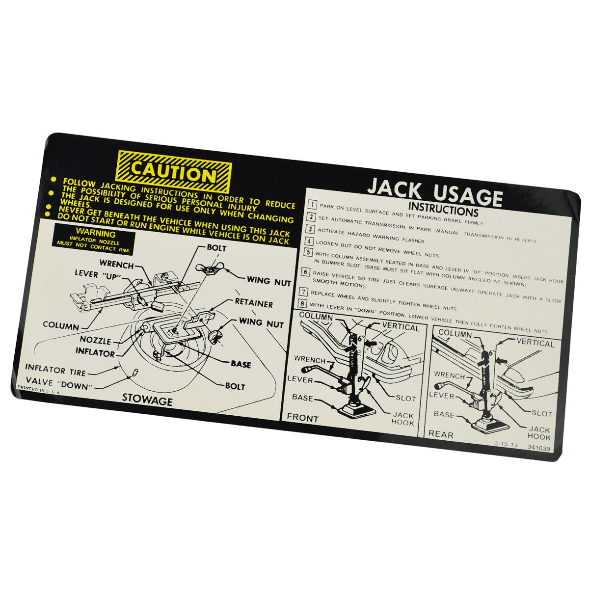 1974 Chevrolet Camaro Space Saver Jacking Instructions.