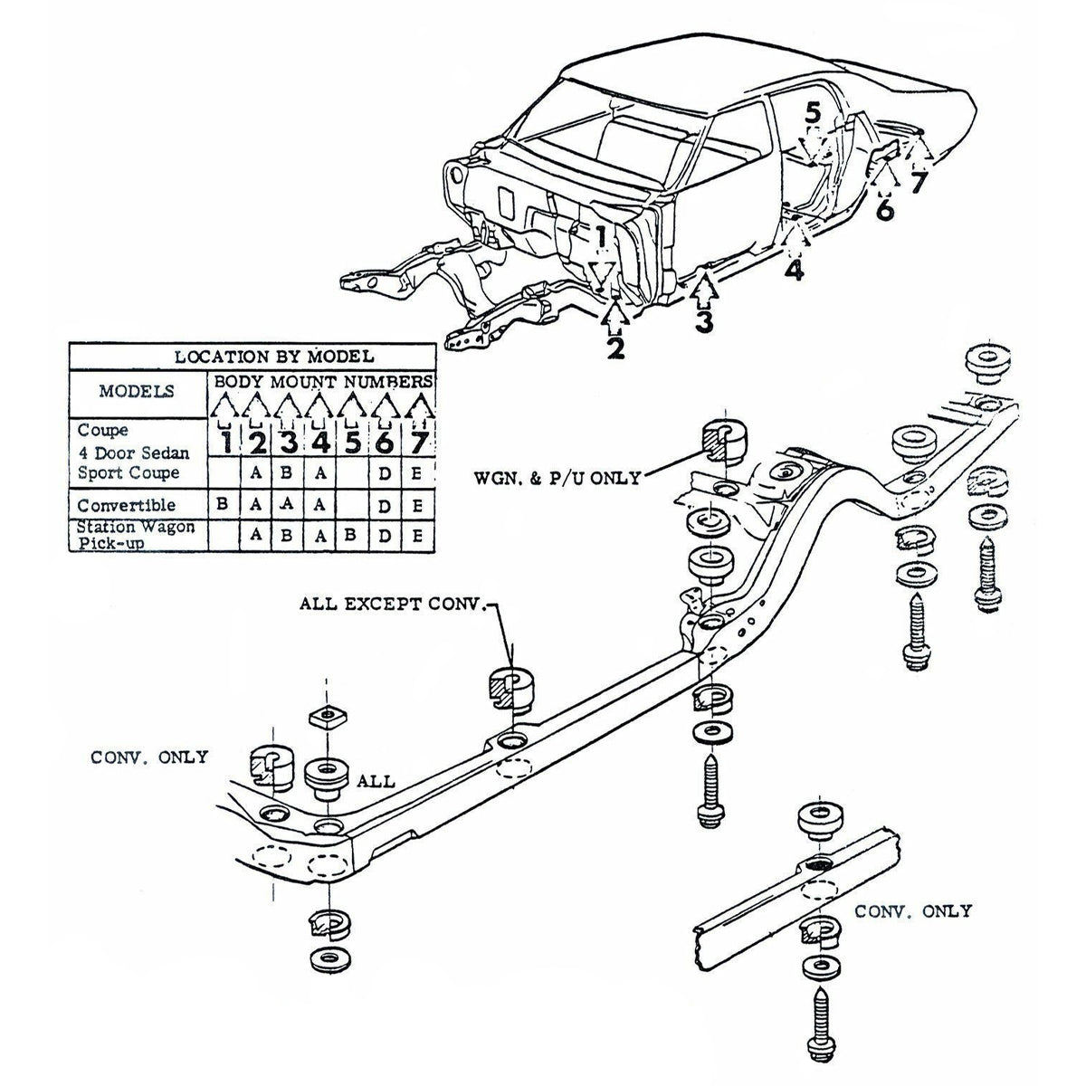 1968-72 Chevrolet Car Hardtop & Convertible Solid Rubber Body Mount 1pc